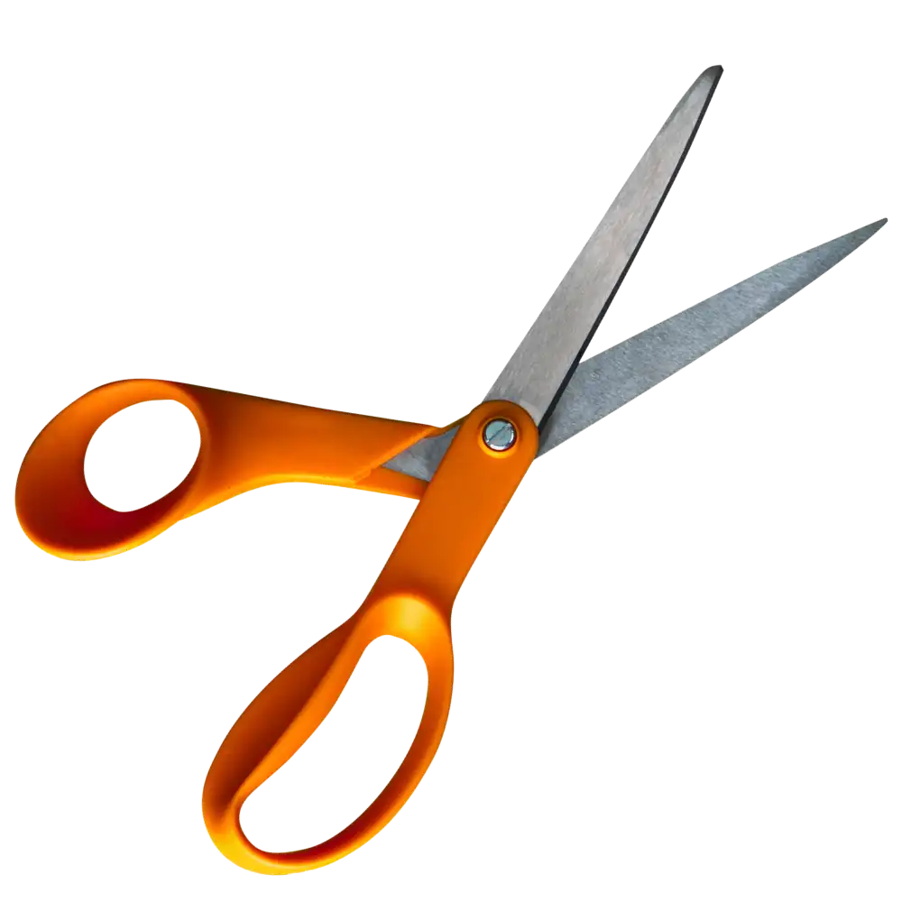 Fiskars és Fiskars stílusú háztartási/szabász ollók precíz élezése: élprofil-helyreállítás, feszesség-beállítás, sorjátlanítás.